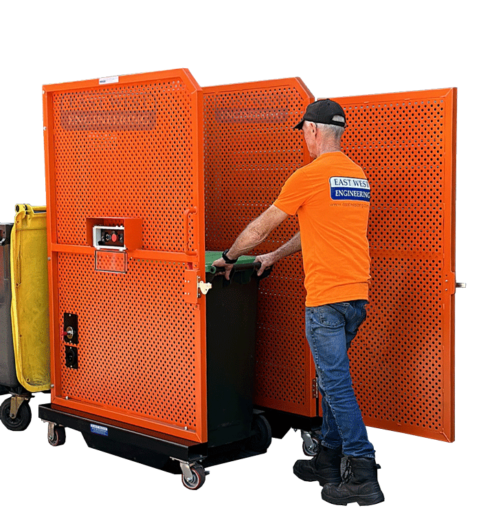 NOTE: Refer to bin manufacturer’s specifications for the rated capacity of the wheelie bin. Do not exceed wheelie bin capacity without the manufacturer's approval. The typical capacity for a std 240L bin is approx. 100kg.